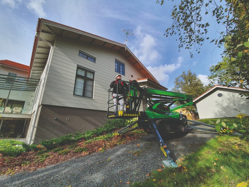 De machine beschikt over een horizontale reikwijdte van 13,50 meter, waardoor je eenvoudig over obstakels heen kunt werken en flexibel inzetbaar bent rondom het object.